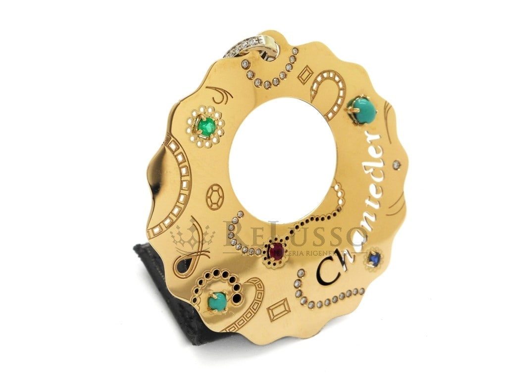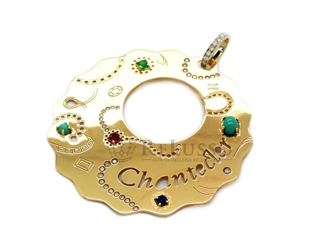 Pendentif Chantecler Suamèm Maxi avec turquoises, saphirs, rubis, émeraudes et diamants
