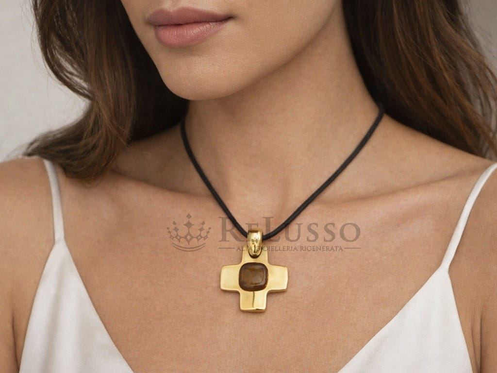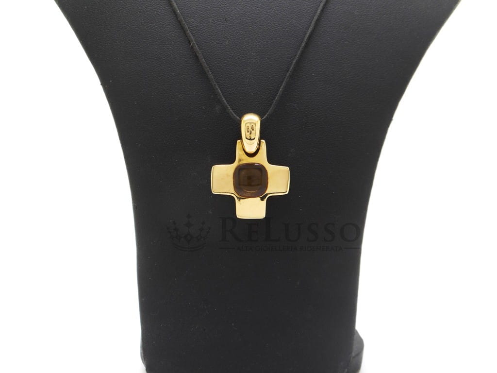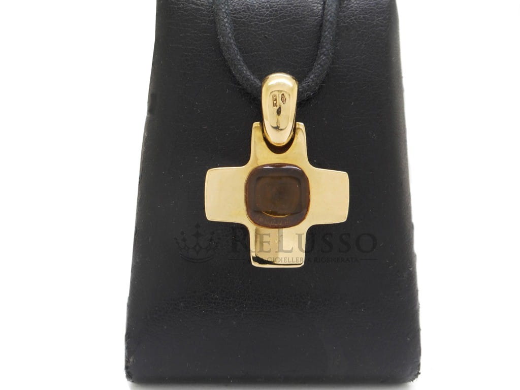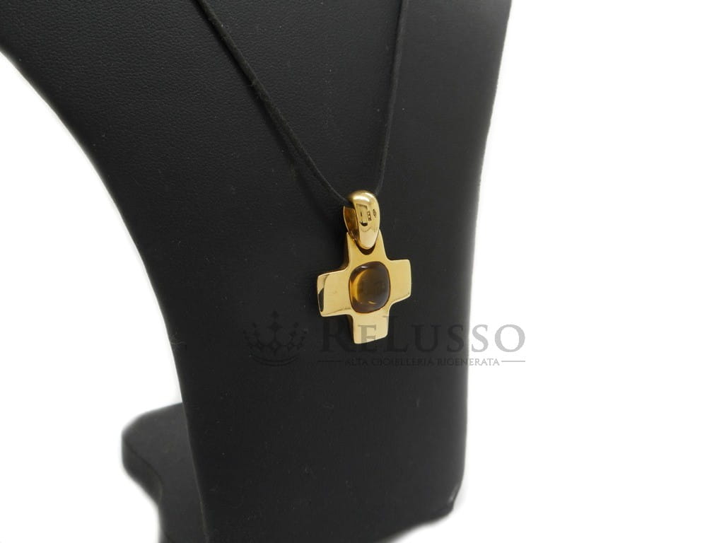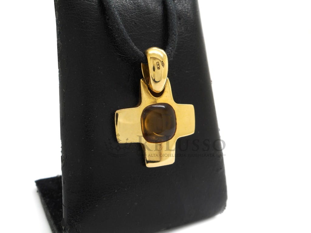 Pendentif croix Pomellato en or jaune avec quartz citrine.