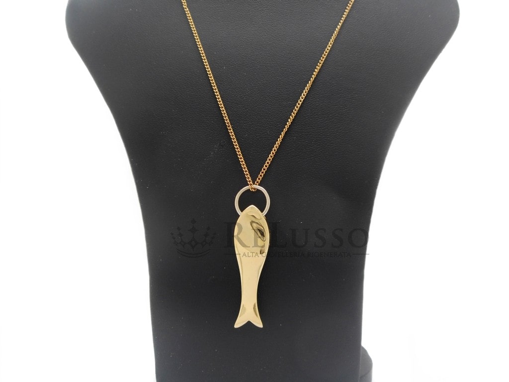 Pendentif Poisson Pomellato en or jaune 18 carats, grande taille. Article abandonnée. Le collier est vendu séparément.