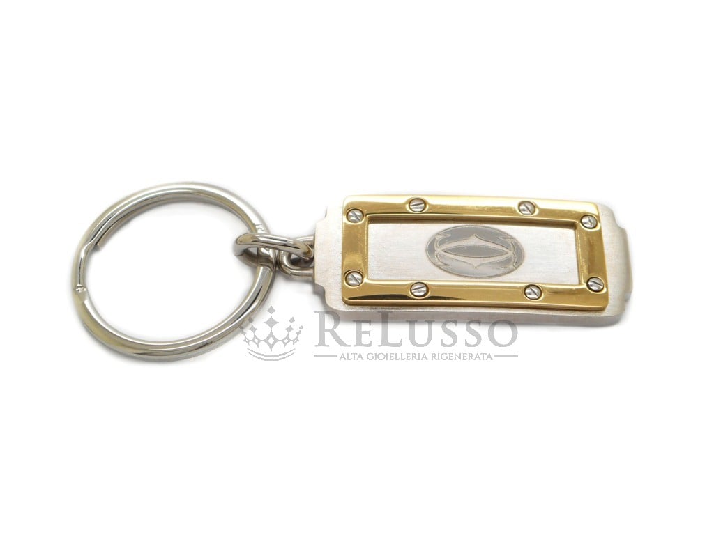 Porte-clés Cartier en acier inoxydable finition dorée de la collection Santos de Cartier.