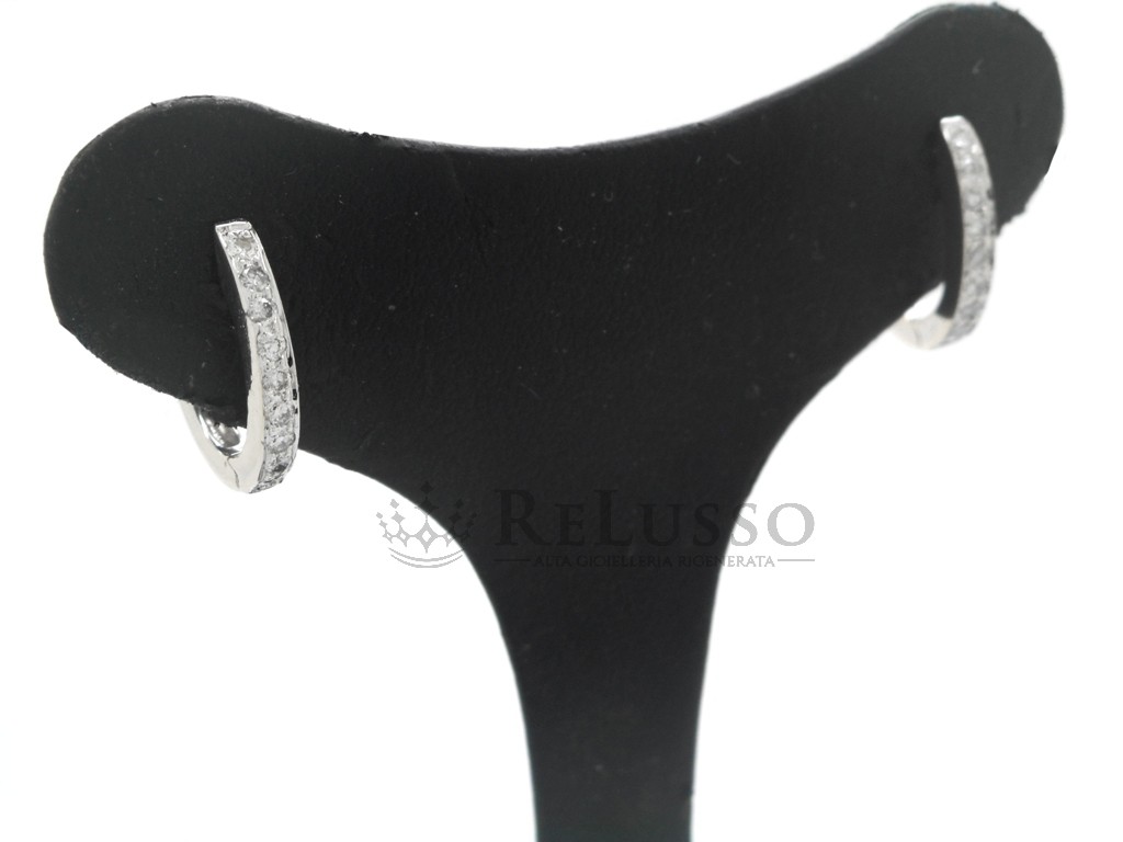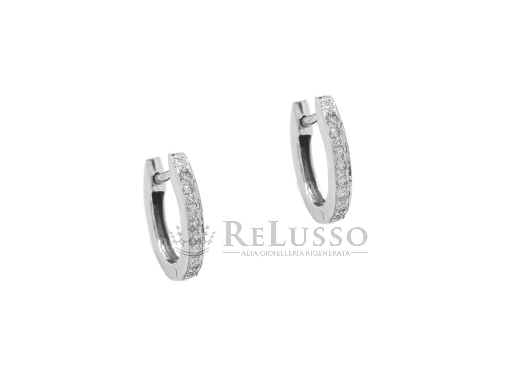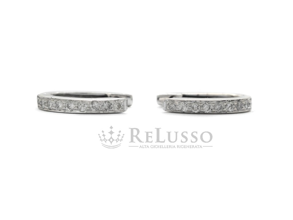 Orecchini a cerchietto in oro bianco 18kt con 18 diamanti taglio brillante rotondo per un peso complessivo stimato di peso di 0,20ct, colore H-I, purezza SI.