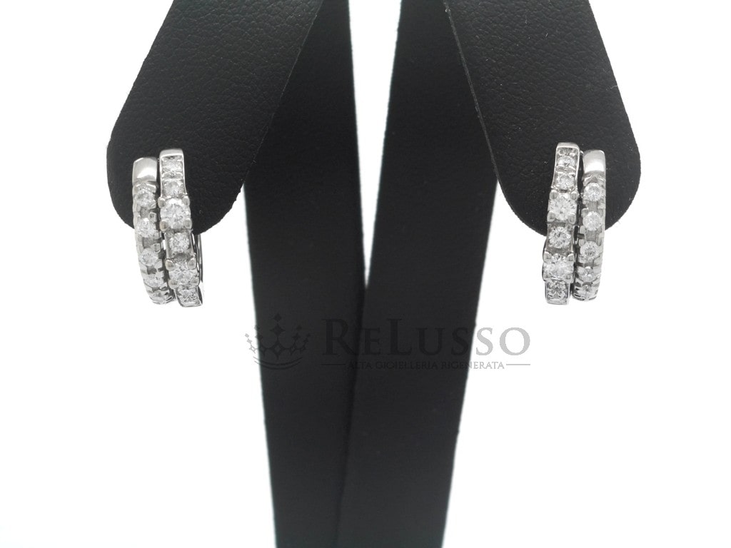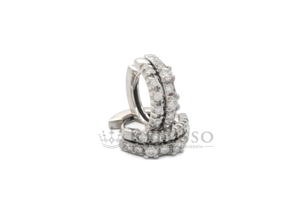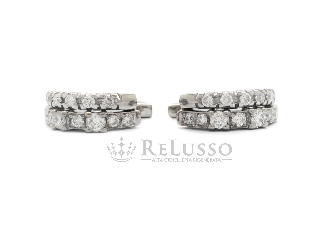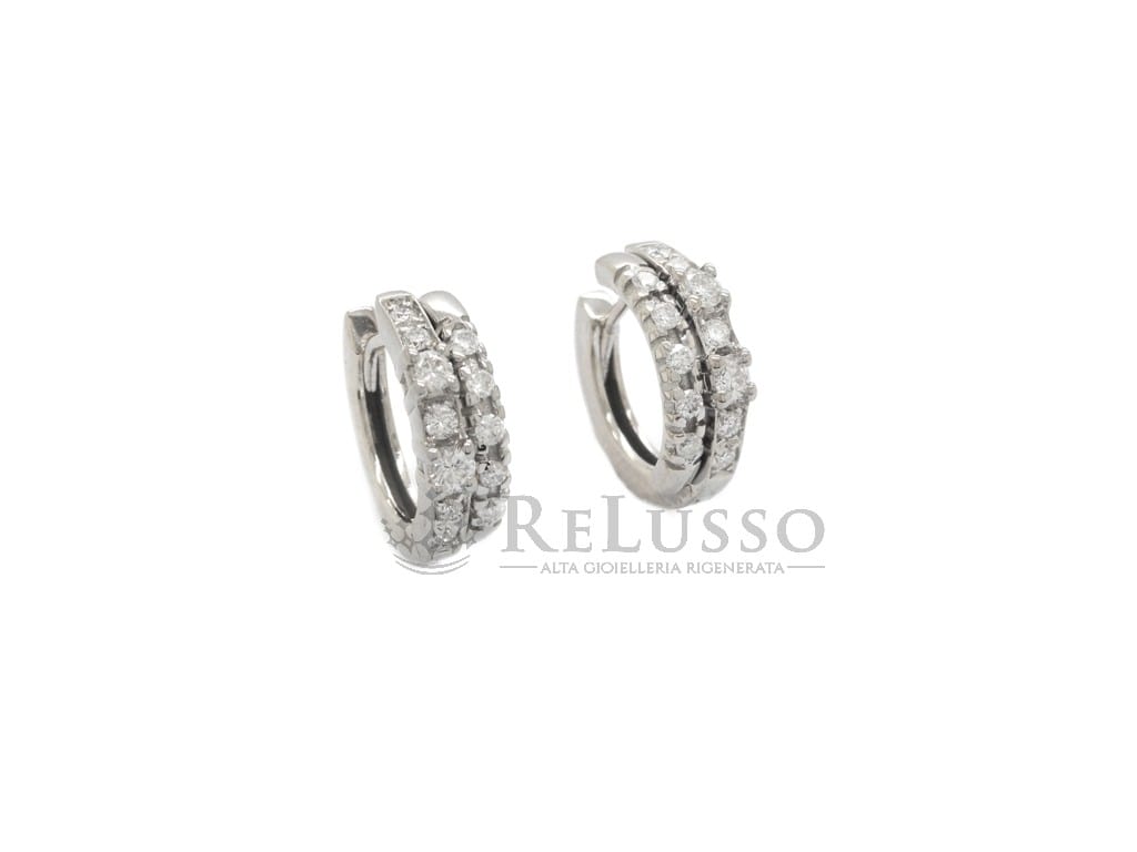 Orecchini a cerchietto in oro bianco 18kt con due file di diamanti taglio brillante rotondo per un peso complessivo stimato di peso di 0,50ct, colore H-I, purezza SI.