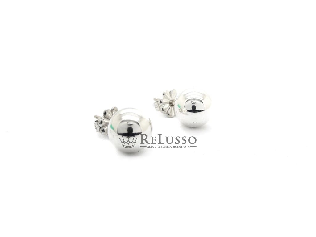 Orecchini Tiffany & co., modello Ball, in argento sterling 925, proveniente dalla collezione Tiffany City HardWear. Il diametro degli orecchini è di 8mm.