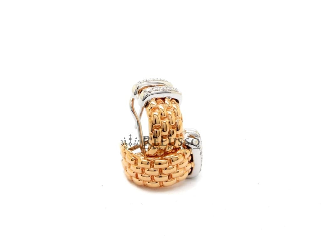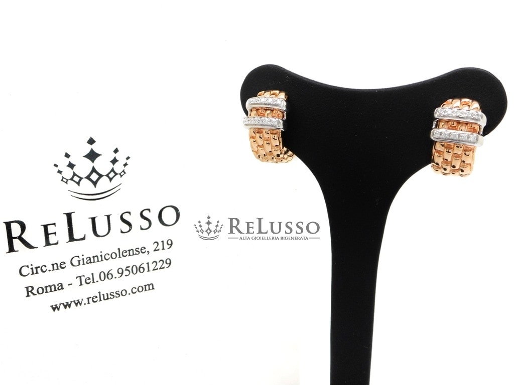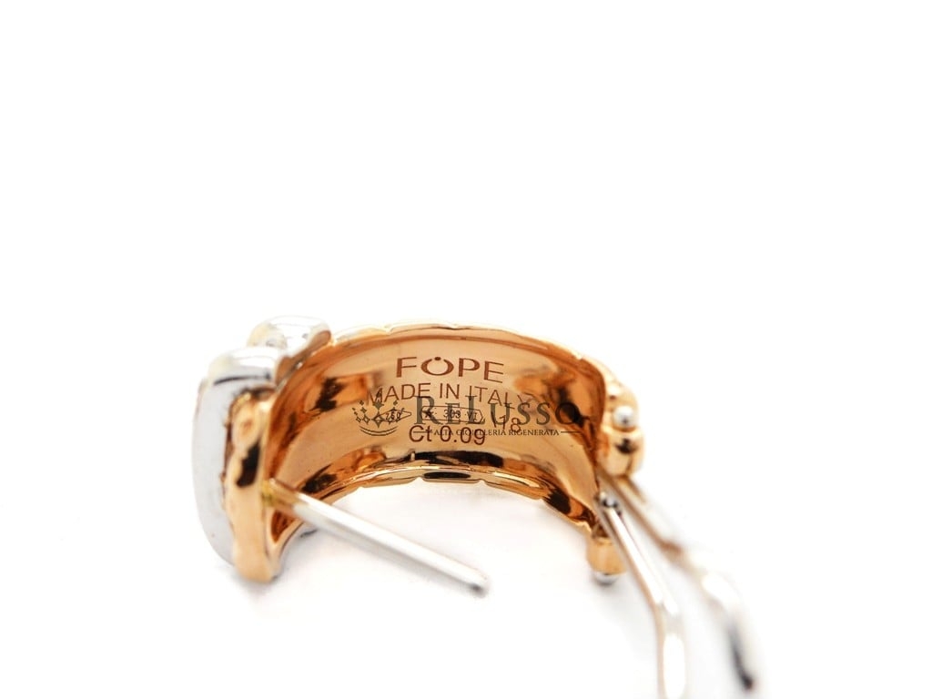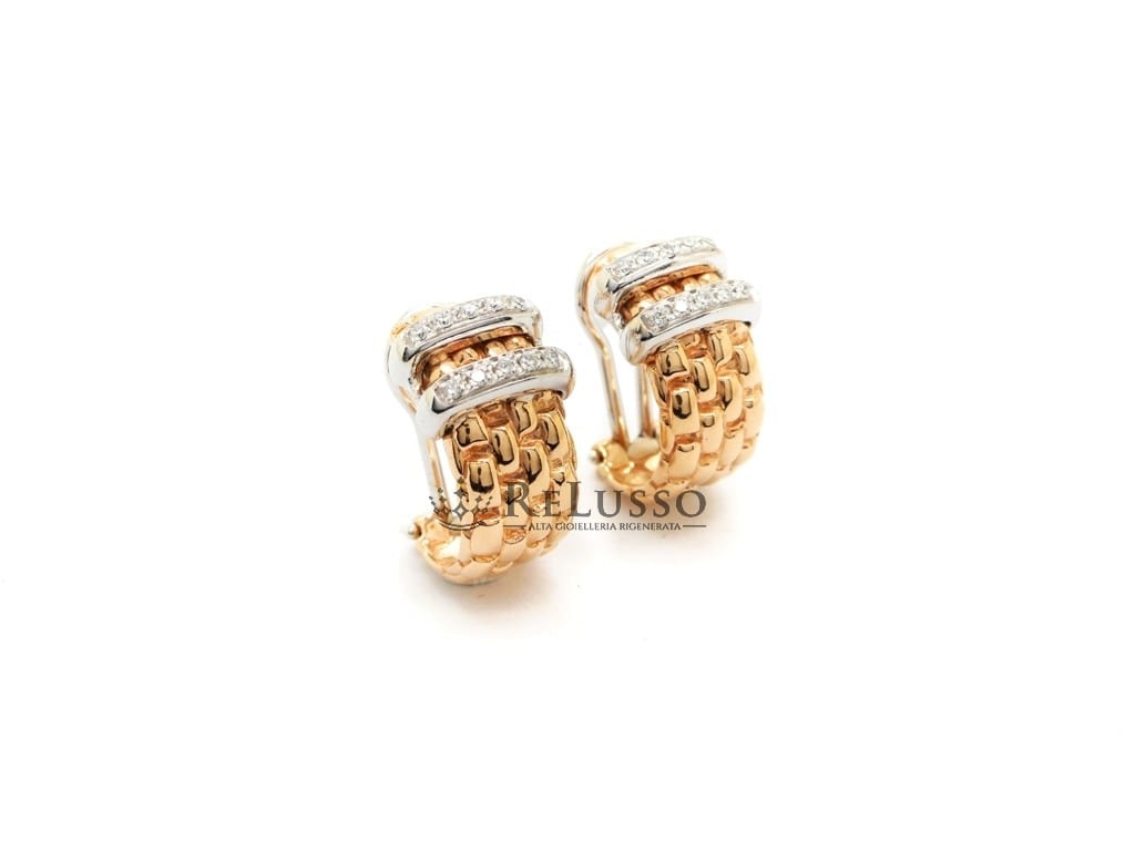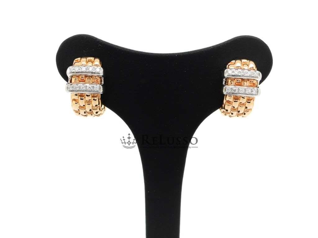 Orecchini Fope in oro rosa 18kt modello Maori, con passanti in oro bianco e diamanti taglio brillante per un peso di 0,09ct complessivi.