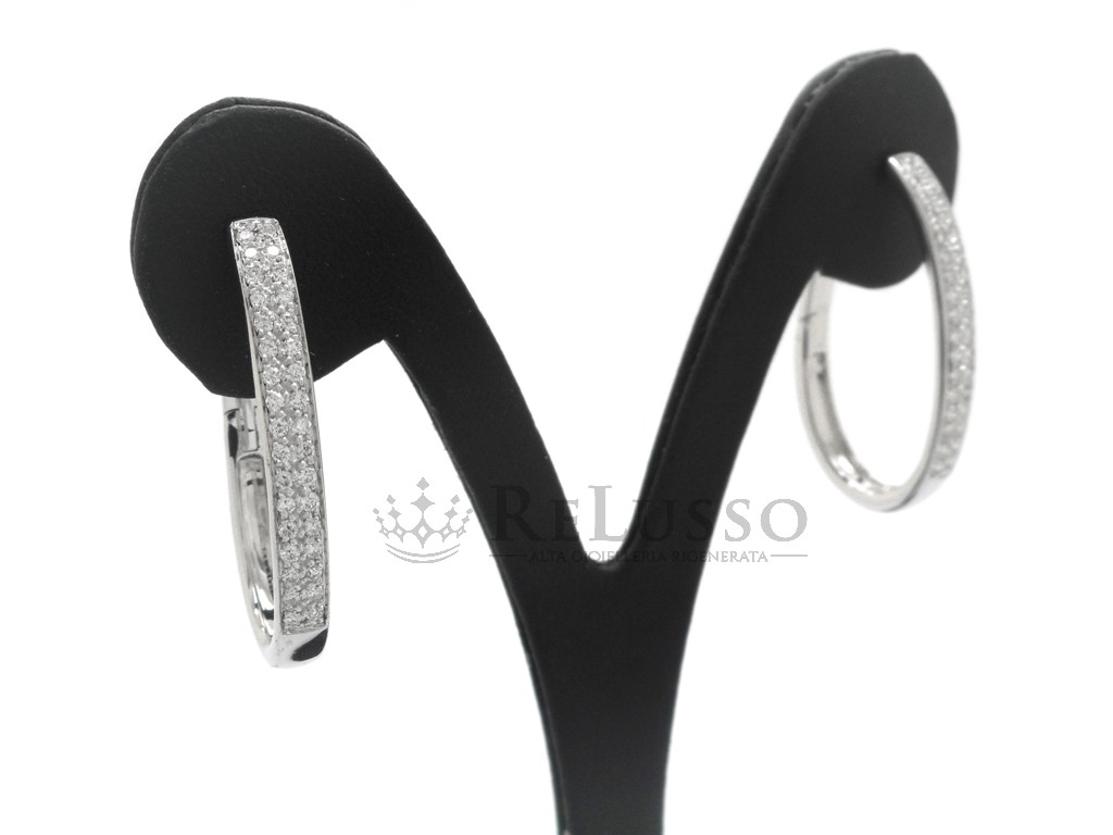 Orecchini Leo Pizzo modello ovale in oro bianco 18kt con un pavè di diamanti formato da 68 pietre taglio brillante rotondo per un peso complessivo stimato di 0,50ct circa.