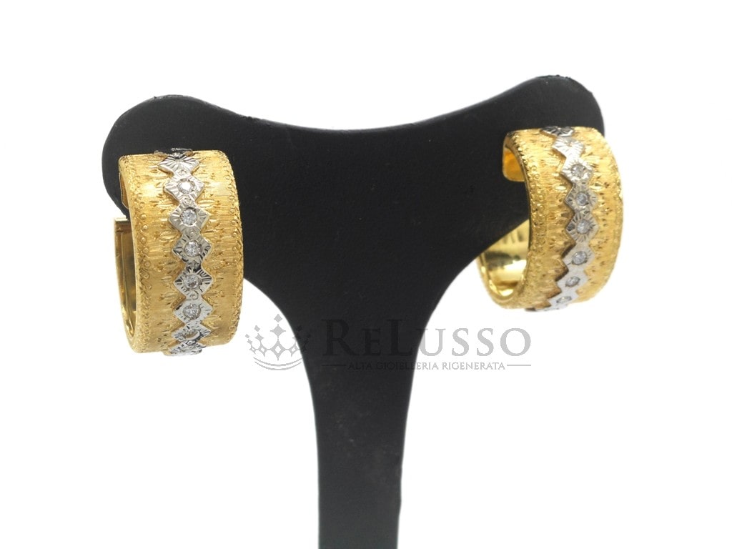 In assolvimento degli oneri di correttezza e trasparenza, la Gioielleria ReLusso® dichiara espressamente di NON rivestire la qualifica di concessionario ufficiale MARIO BUCCELLATI e di non intrattenere rapporti commerciali diretti con la societa’ titolare del marchio. Tutti i gioielli MARIO BUCCELLATI esposti sono acquistati da privati e rimessi a nuovo mediante l’esclusivo metodo rigenerante LuxuRigenâ„¢. In ogni caso ReLusso garantisce l’assoluta originalità e la perfetta integrità dei beni commercializzati e le relative garanzie. I collegamenti ai siti delle case produttrici presenti in questa e nelle altre pagine del sito, hanno l’esclusivo scopo di agevolare i visitatori del nostro sito nella consultazione dei prodotti da noi commercializzati nel rispetto della legge vigente, ma in relazione ai quali NON rivestiamo la qualità di rivenditori autorizzati. Le case produttrici a cui i collegamenti rimandano sono le esclusive titolari del marchio dei prodotti e licenziatarie dello stesso. ReLusso non fa parte di MARIO BUCCELLATI concessionari ufficiali e MARIO BUCCELLATI rivenditori autorizzati. Il Prezzo di Listino del nuovo indicato su alcuni gioielli, corrisponde al “prezzo di listino al pubblico” riportato sul sito ufficiale della maison o su quelli dei loro rivenditori ufficiali. Viene riportato per fornire una indicazione del valore del prodotto, ma in alcuni negozi il prezzo effettivo potrebbe risultare più basso. Tutti i nostri gioielli sono venduti con l’escusiva confezione regalo ReLusso. La scatola originale del gioiello è fotografata esclusivamente a scopo illustrativo e potrebbe non essere disponibile. Per maggiori informazioni vi preghiamo di leggere le nostre FAQ – Domande frequenti.