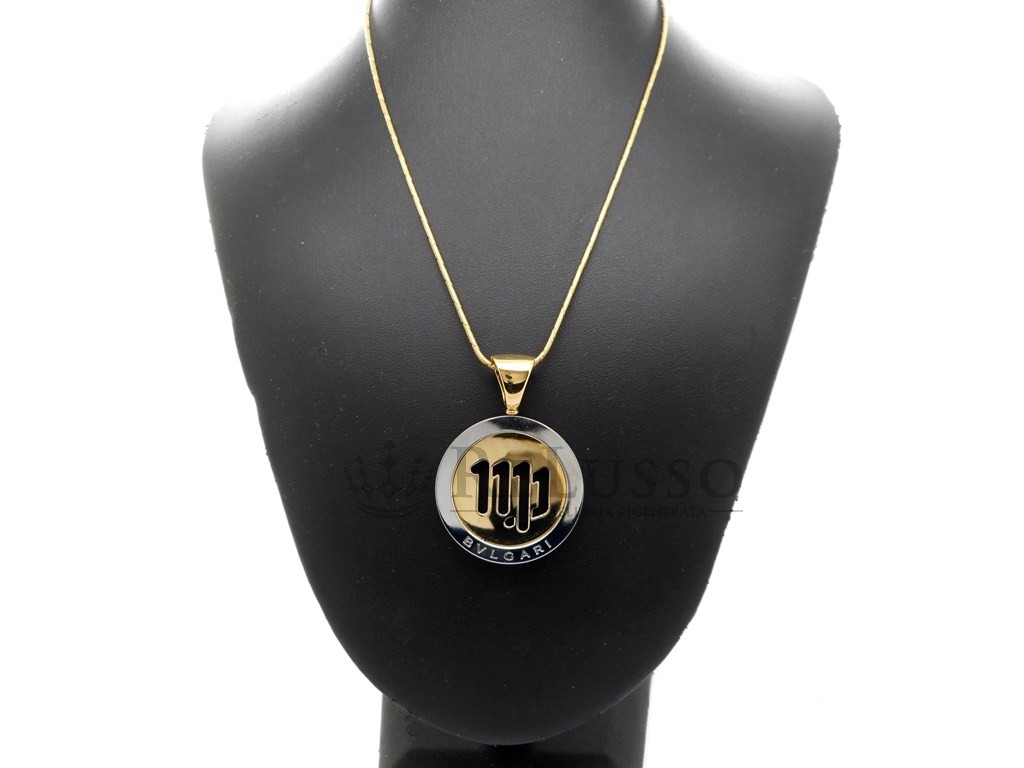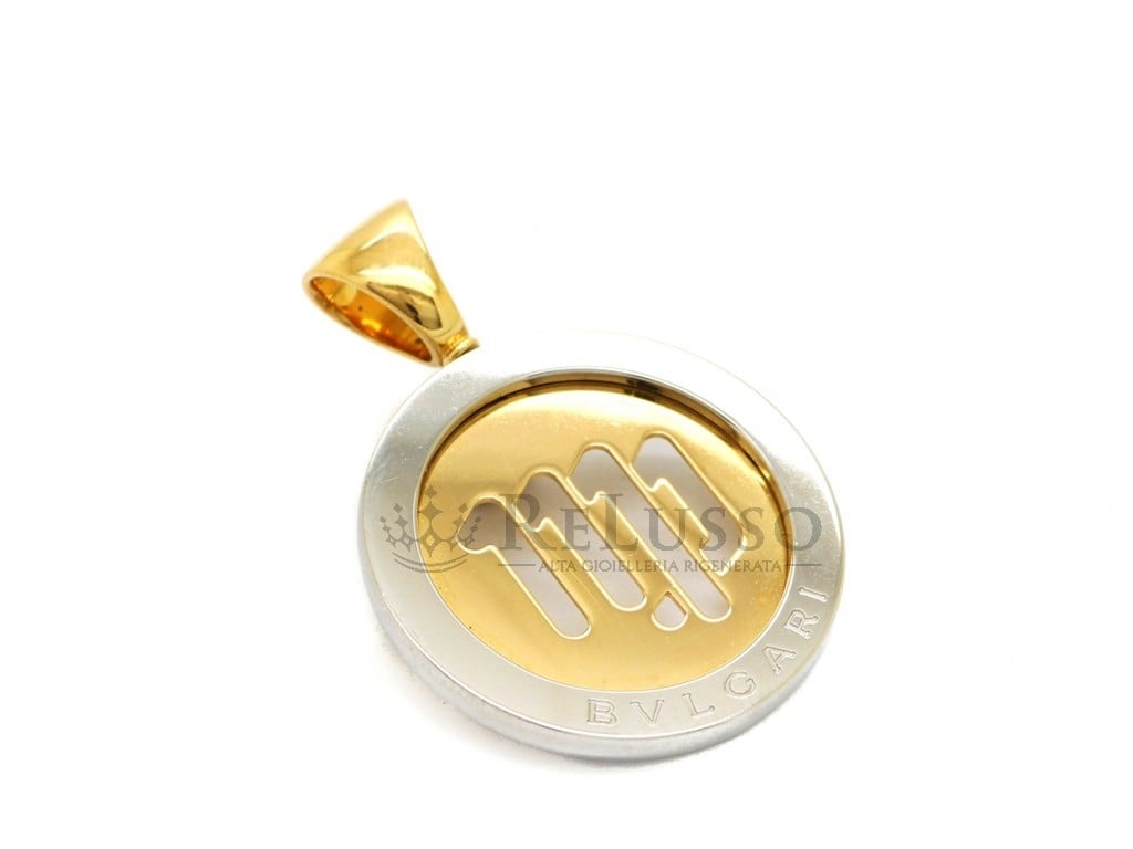 Pendente Bulgari tondo Virgo in acciaio e oro giallo 18kt.
