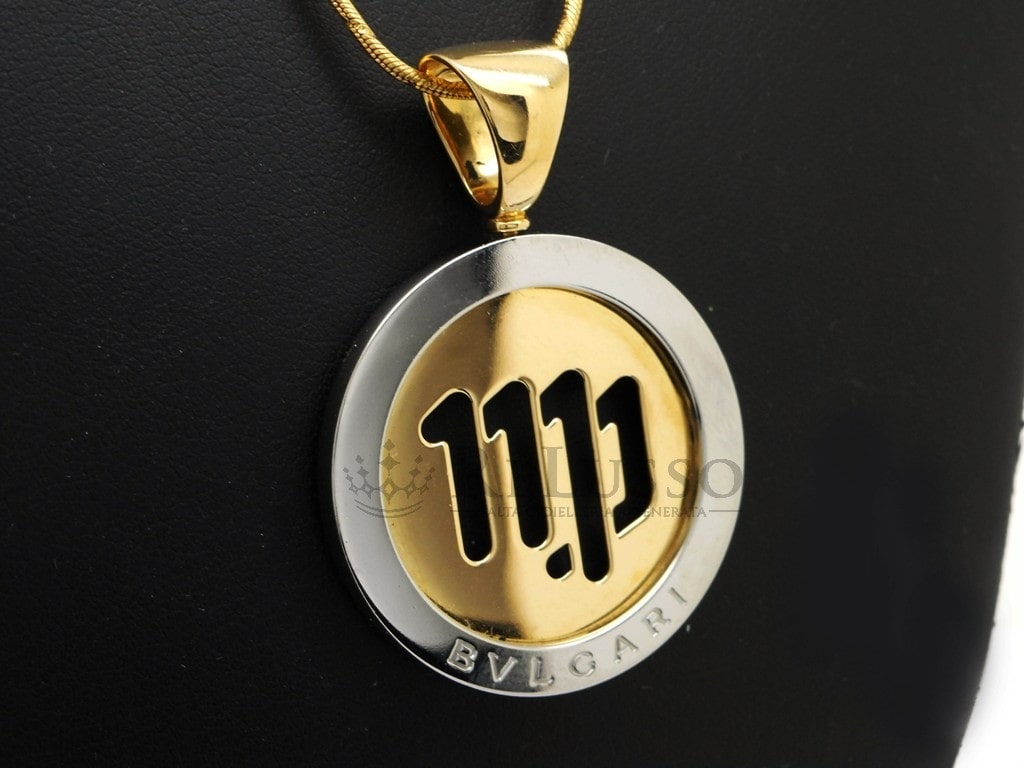 Pendente Bulgari tondo Virgo in acciaio e oro giallo