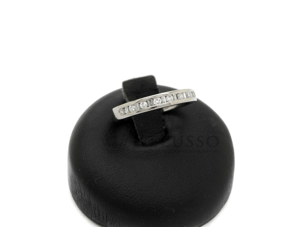Anello riviera firmata Brown & Newirth in oro bianco 18kt con 15 diamanti taglio brillante e baguette per un peso complessivo di 0,20ct, colore G-H, purezza SI. Misura 9 ITA.